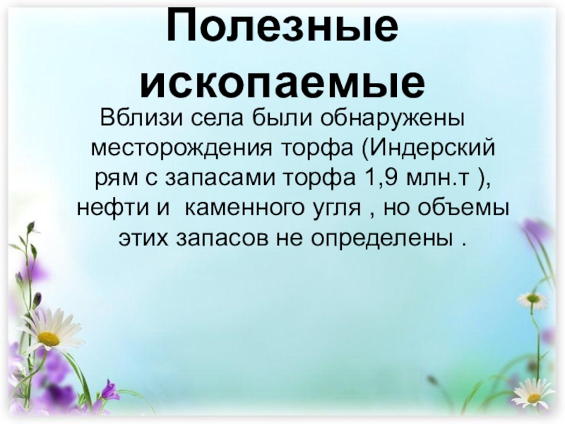 Вблизи села были обнаружены месторождения торфа (Индерский рям с