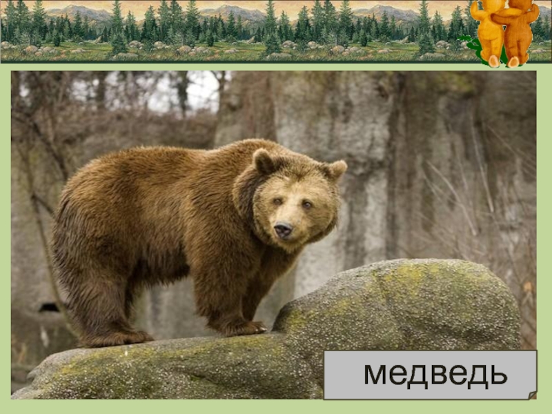 Медведь живет в лесу, он большой и сильный. Густая теплая шуба