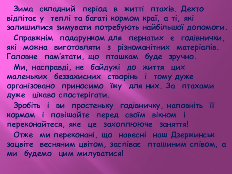 Проект «Допоможемо зимуючим птахам» (2 клас)