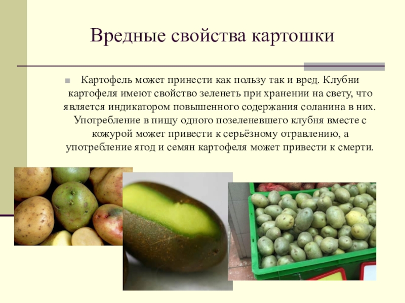 Слайд 21Вредные свойства картошки