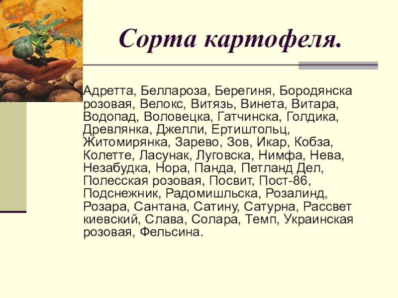 Слайд 9Сорта картофеля.