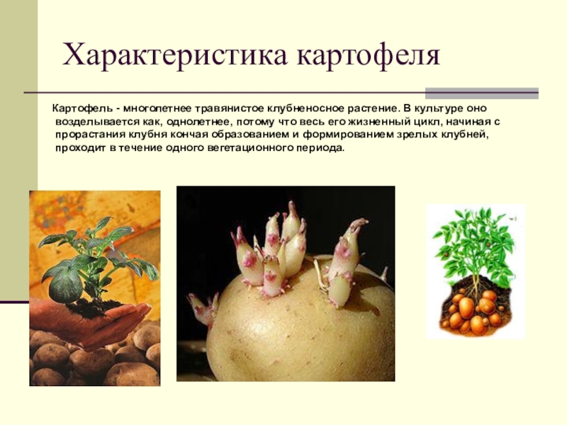 Картофель - многолетнее травянистое клубненосное растение. В