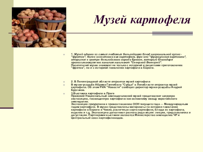 Слайд 18Музей картофеля