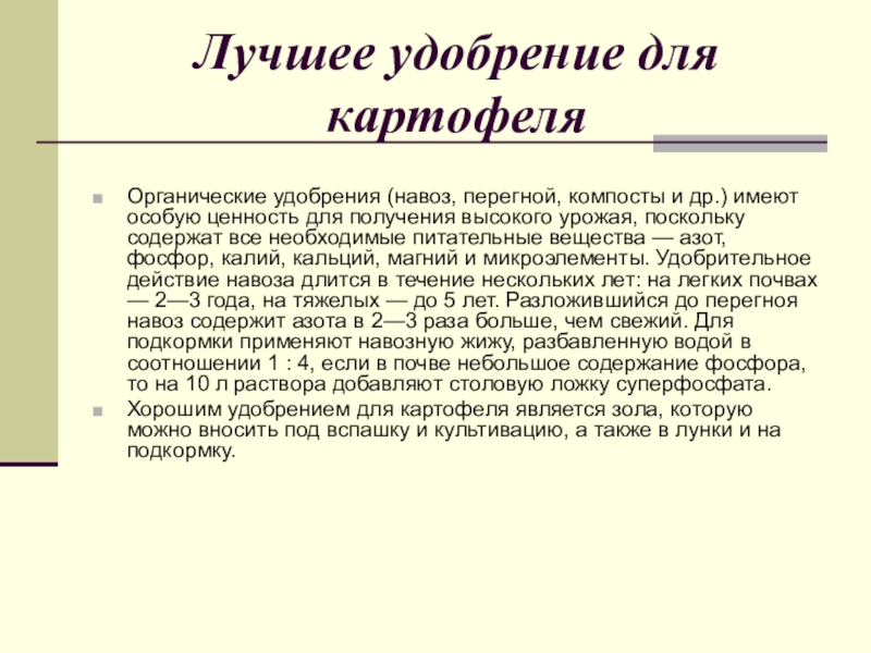 Слайд 14Лучшее удобрение для картофеля