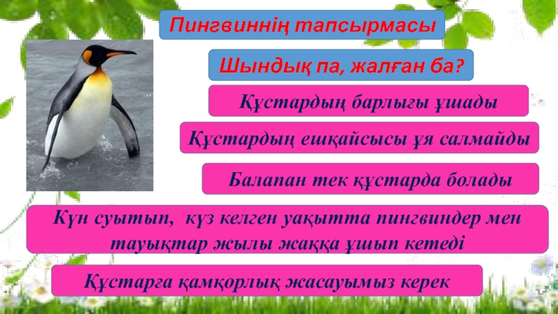 Күн суытып, күз келген уақытта пингвиндер мен тауықтар жылы жаққа ұшып кетеді