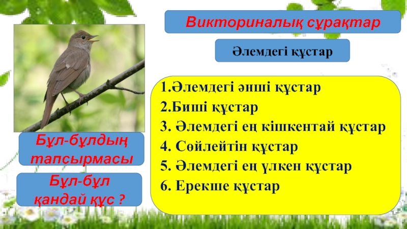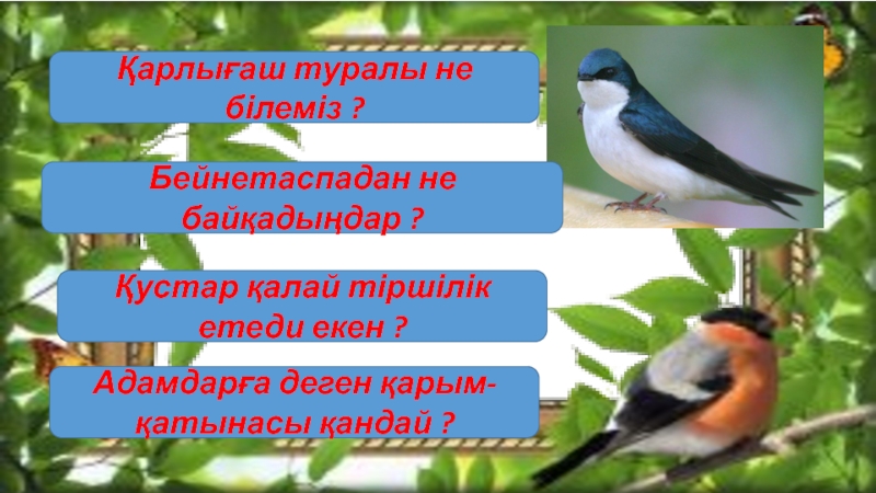 Оқушыларда құстар тіршілігі, ерекшелігі жайлы түсінік қалыптастыру,