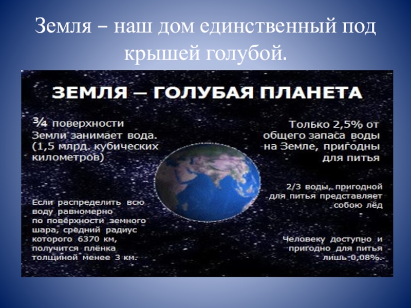 Слайд 4Земля – наш дом единственный под крышей голубой.