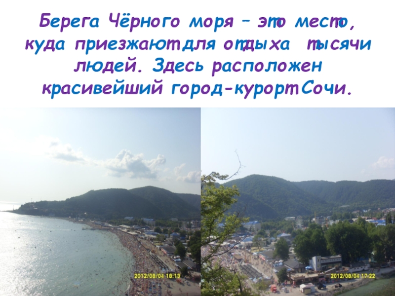 Слайд 2Берега Чёрного моря – это место, куда приезжают для отдыха тысячи
