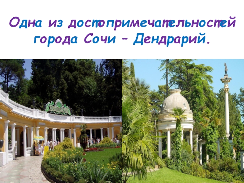 Слайд 4Одна из достопримечательностей города Сочи – Дендрарий.