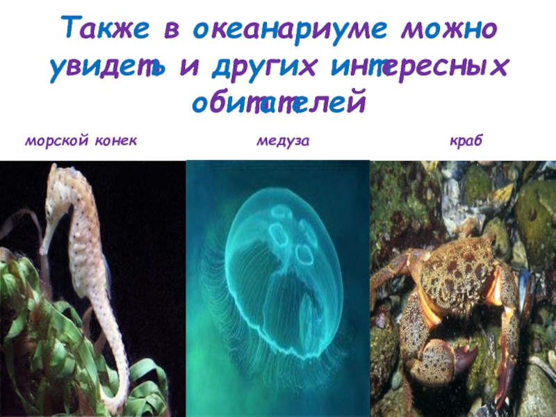Слайд 11Также в океанариуме можно увидеть и других интересных обитателей