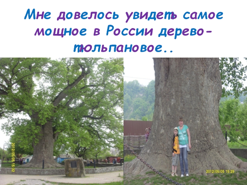 Слайд 8Мне довелось увидеть самое мощное в России дерево- тюльпановое..