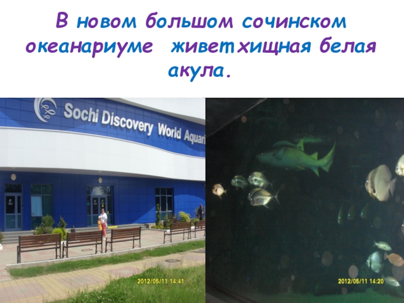 Слайд 10В новом большом сочинском океанариуме живет хищная белая акула.