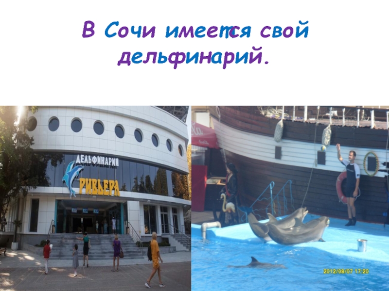 Слайд 9В Сочи имеется свой дельфинарий.
