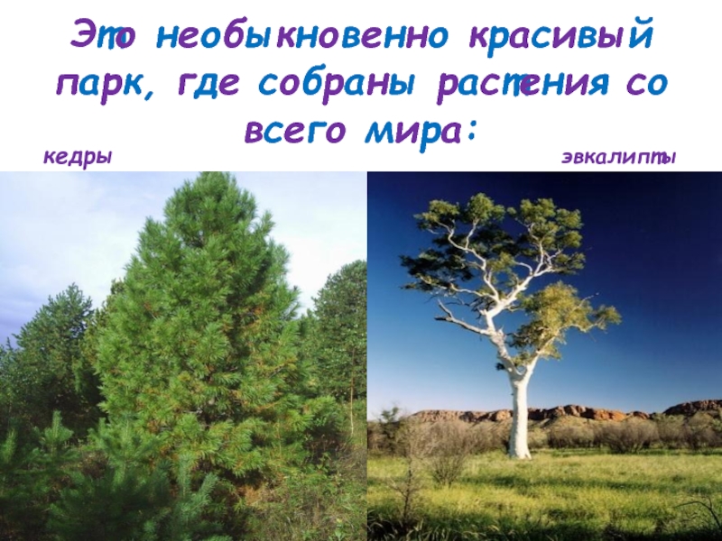 Это необыкновенно красивый парк, где собраны растения со всего мира:кедрыэвкалипты