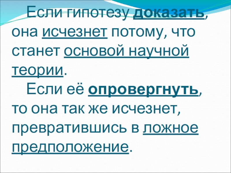 Слайд 4 Если гипотезу доказать, она исчезнет потому, что станет основой