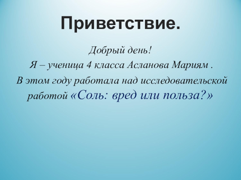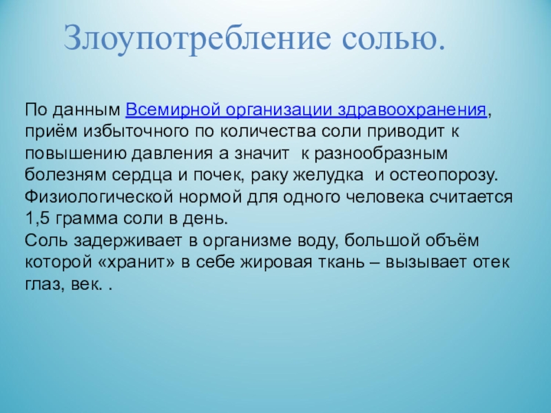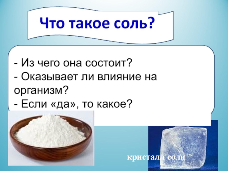 Определить пользу или вред оказывает соль на организм человека и на окружающие нас предметы.