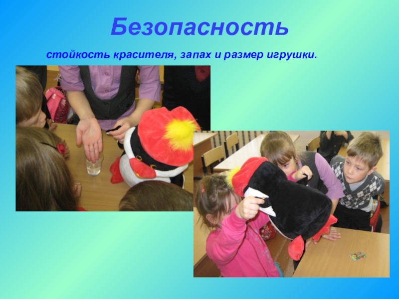 стойкость красителя, запах и размер игрушки.