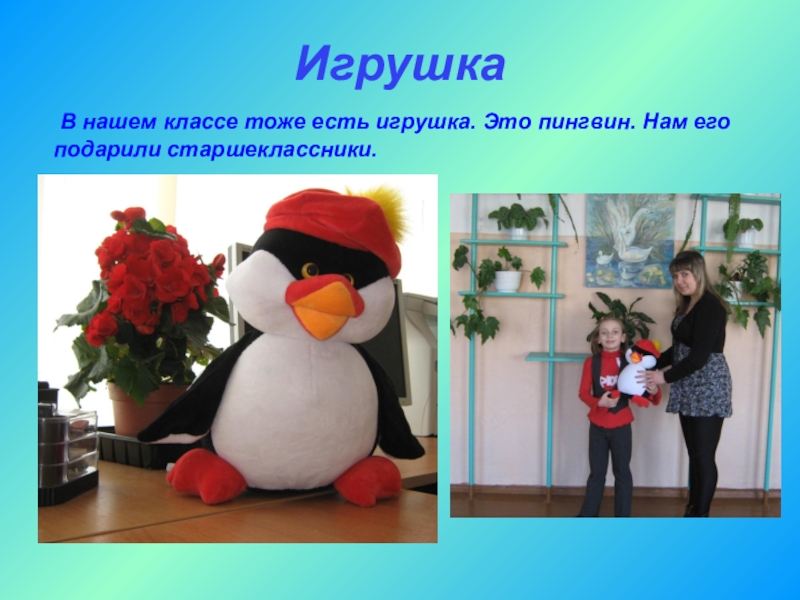 В нашем классе тоже есть игрушка. Это пингвин.