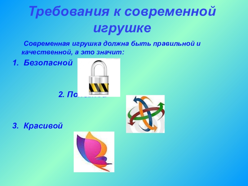 Слайд 33Требования к современной игрушке