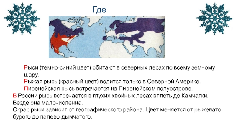 Рыжая рысь (красный цвет) водится только в Северной Америке.