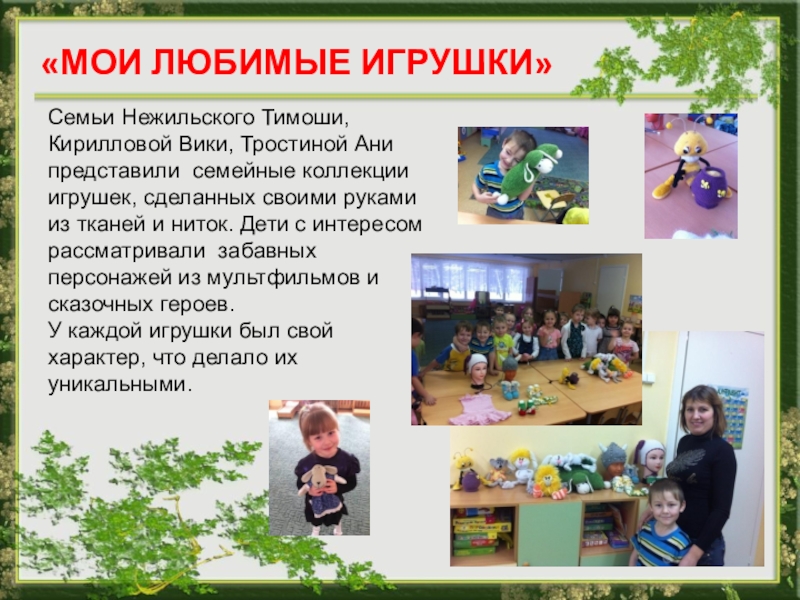 коллекции игрушек, сделанных своими руками из тканей и ниток. Дети с интересом рассматривали забавных персонажей из мультфильмов и сказочных героев.