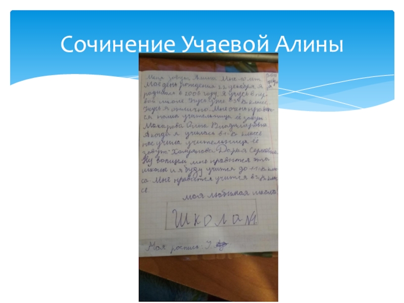 учусь в 4 «В» классе. Моя семья состоит из 3 человек. Я живу в г. Асино и родилась тоже в г.Асино 6.11.2007г. Живу на П. Морозова 2, кв.6. Мама работает лаборантом в поликлинике. Папа работает на вахте. В свободное время я играю со свой кошкой Лизой.