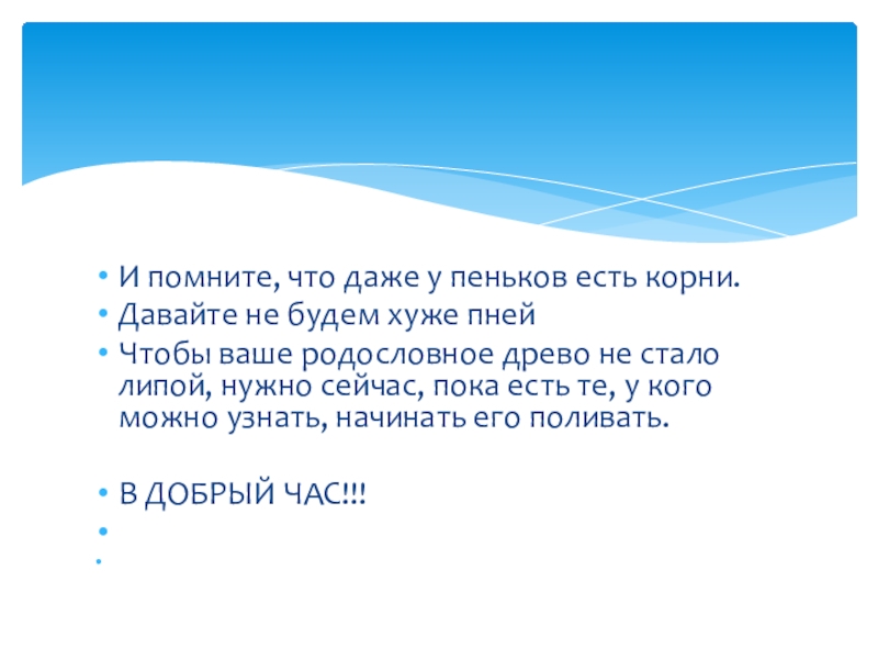 Чтобы ваше родословное древо не стало липой, нужно сейчас, пока есть те, у кого можно узнать, начинать его поливать.
