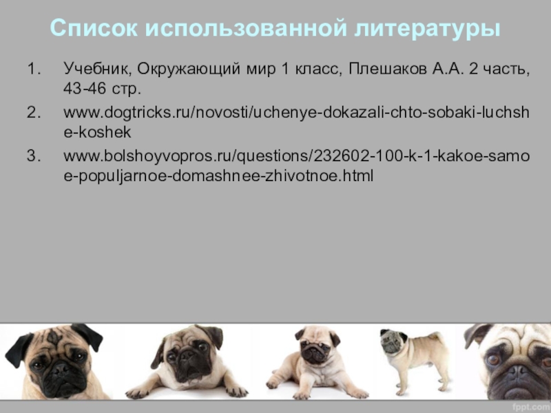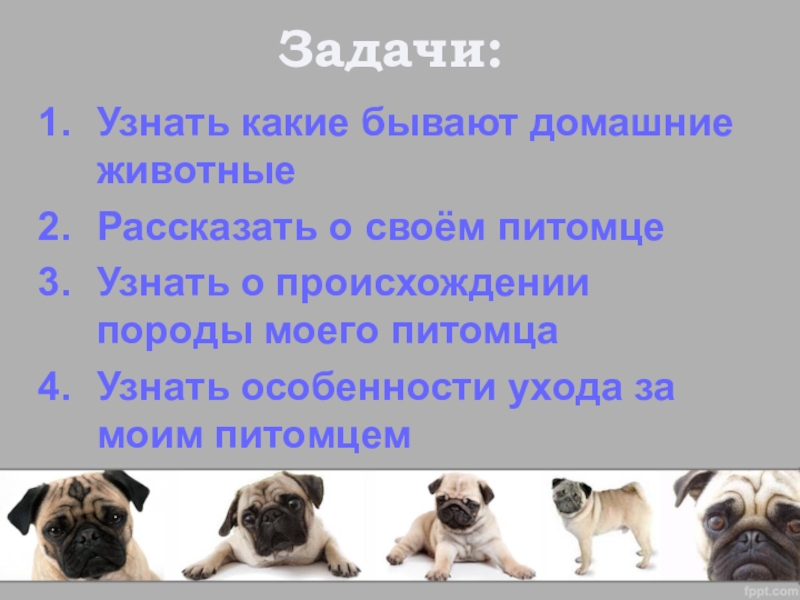 о разных домашних питомцах. Цель проекта достигнута. Задачи проекта выполнены. Я определилась и считаю, что мы сделали правильный выбор.