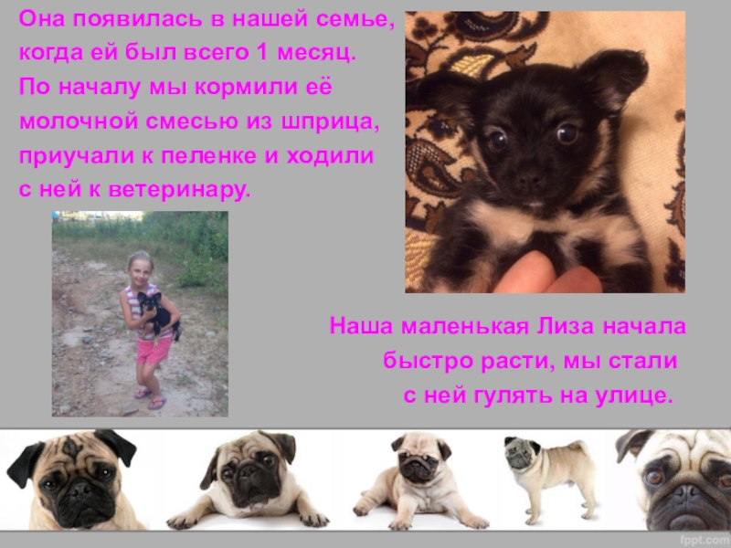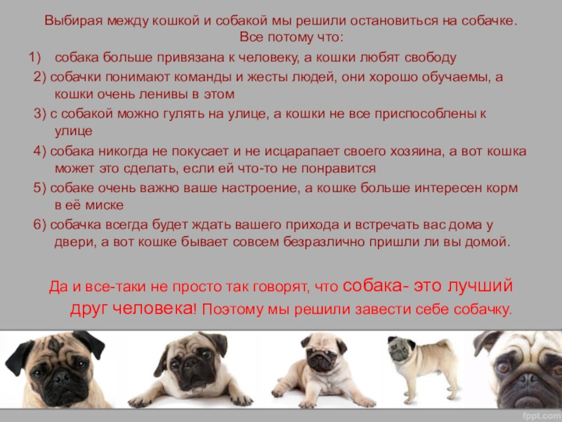 Слайд 6Выбирая между кошкой и собакой мы решили остановиться на собачке. Все