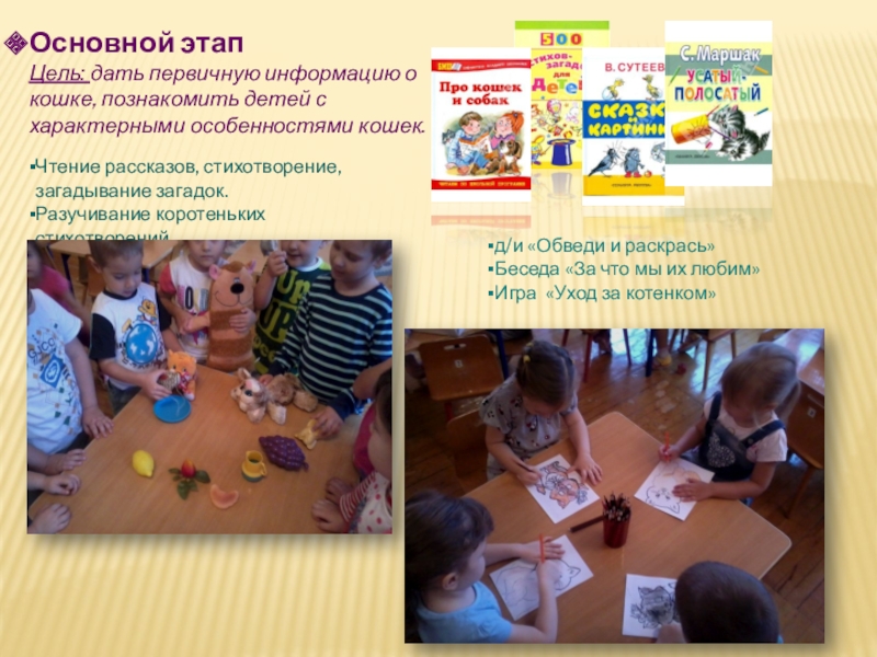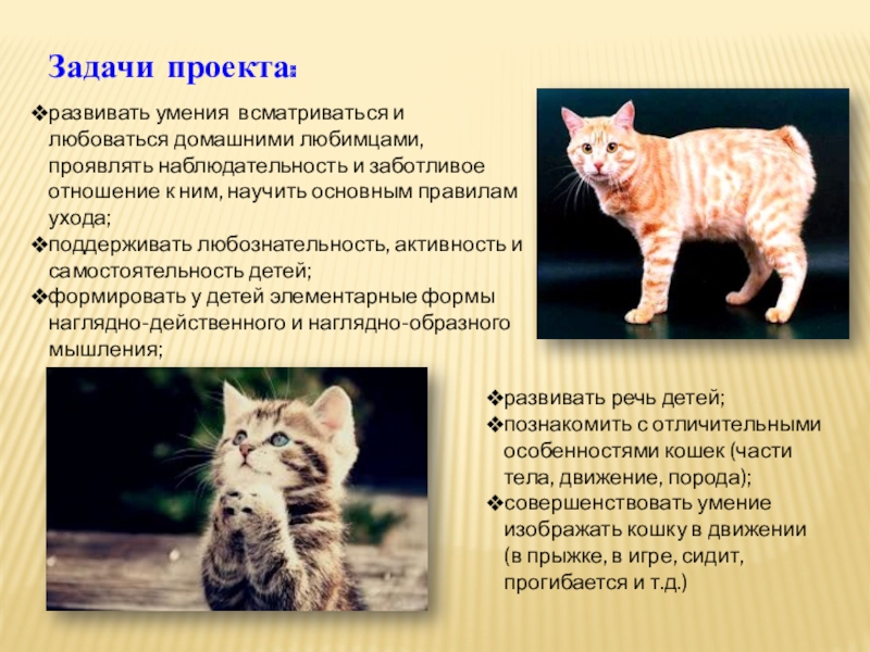 познакомить с отличительными особенностями кошек (части тела, движение, порода);