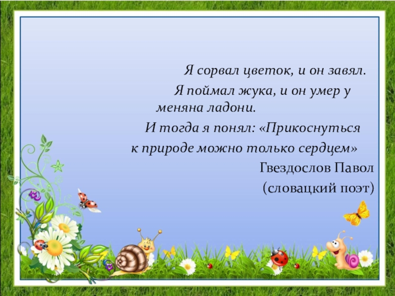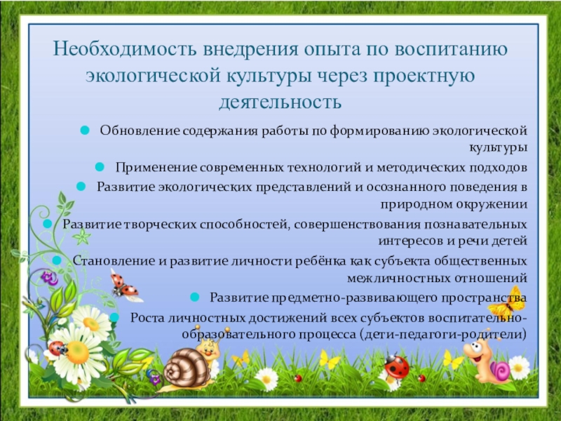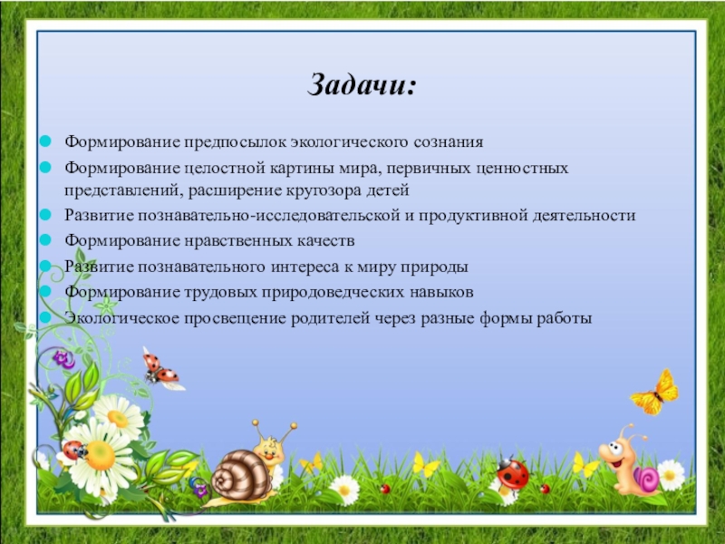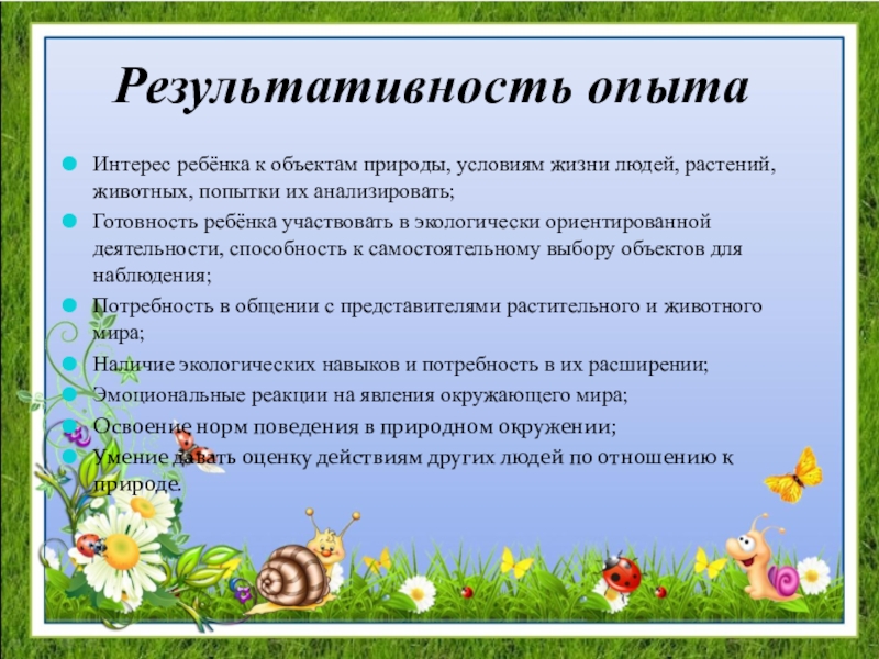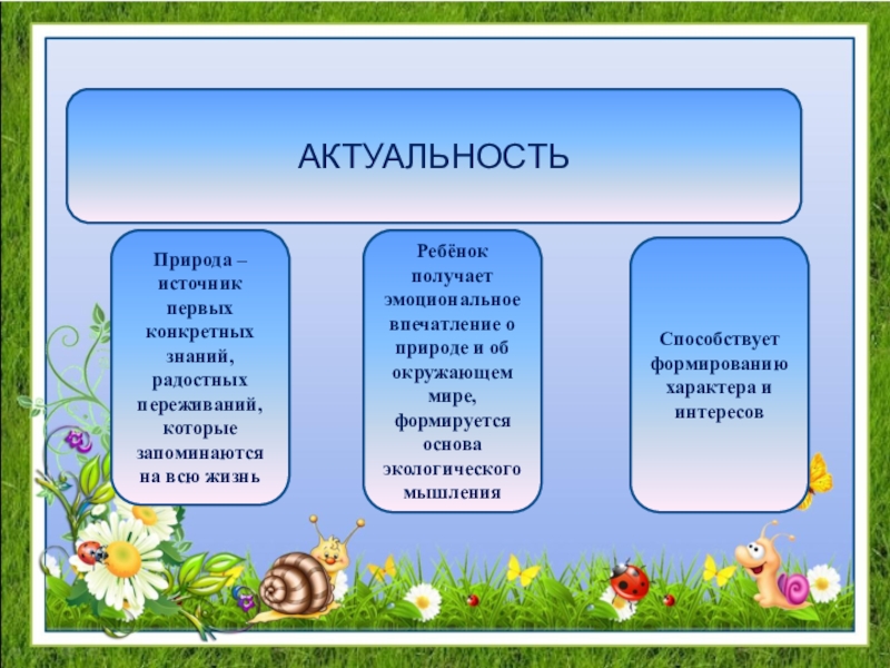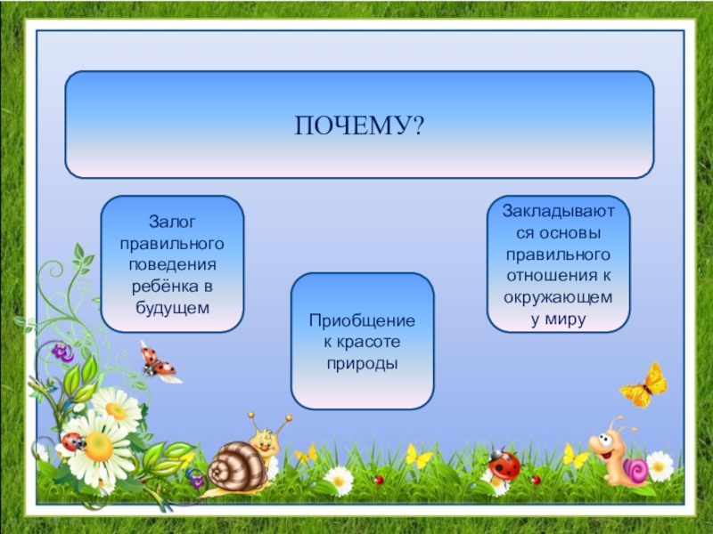 Ребёнок получает эмоциональное впечатление о природе и об окружающем мире, формируется основа экологического мышления