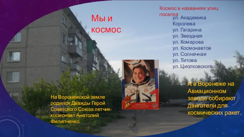 На Воронежской земле родился Дважды Герой Советского Союза летчик-космонавт Анатолий Филипченко.