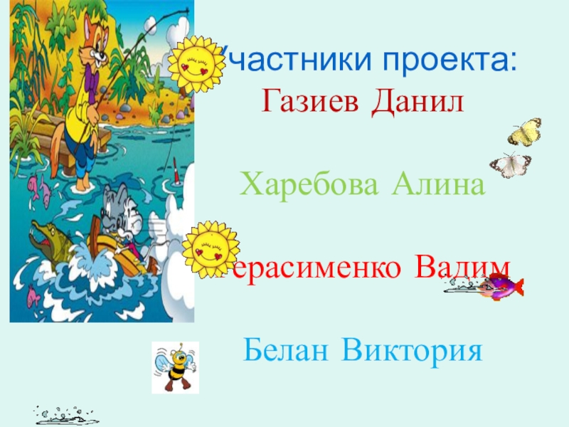 Слайд 2 Участники проекта: Газиев Данил Харебова Алина Герасименко Вадим Белан Виктория