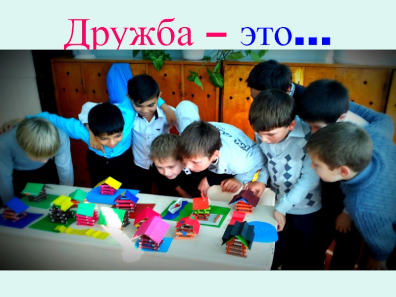 о друге знать в процессе совместного сотрудничества, то в классе и в целом в общении с другими людьми у нас не возникнет конфликтных ситуаций, мы научимся уважать друг друга и прислушиваться к мнению друг друга и тогда мы ответим на главный вопрос- что же такое дружба?
