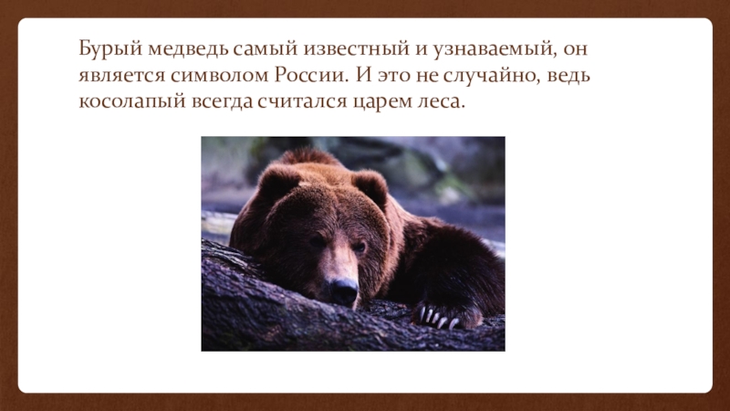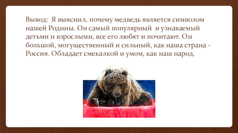 Известно, что медведь- животное, символизирующее Россию.