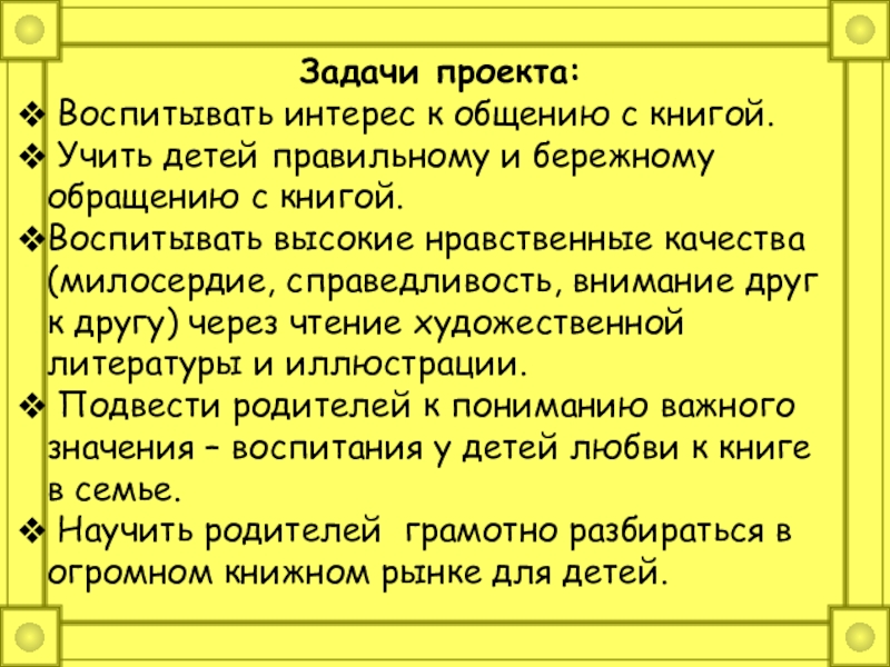 Подвести родителей к пониманию важного значения – воспитания у детей любви к книге в семье.