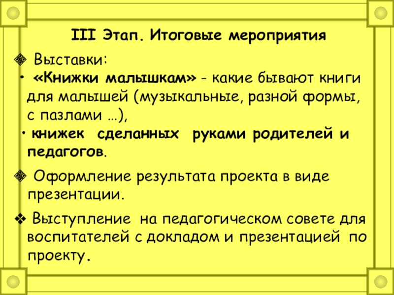 Слайд 16III Этап. Итоговые мероприятия