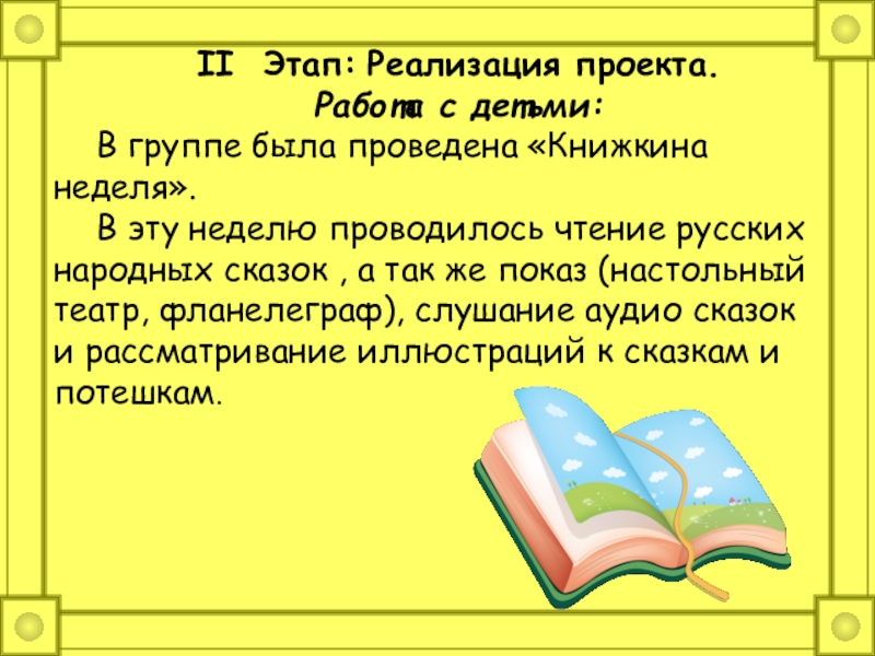 Слайд 12II Этап: Реализация проекта.