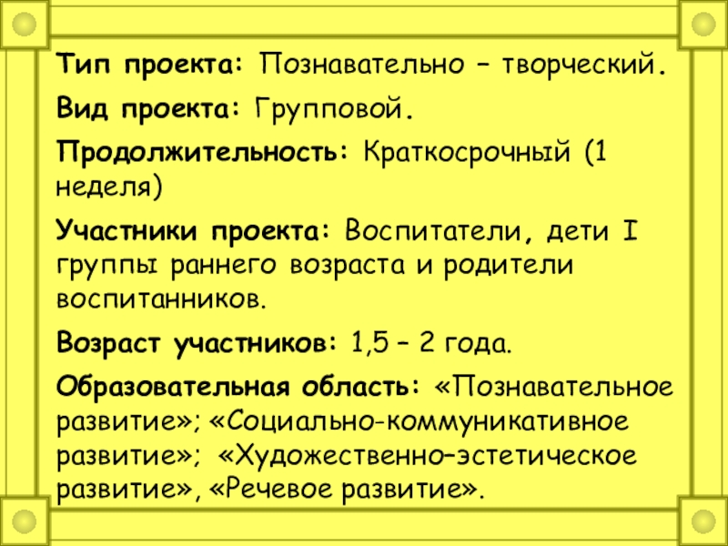 Слайд 2Тип проекта: Познавательно – творческий.