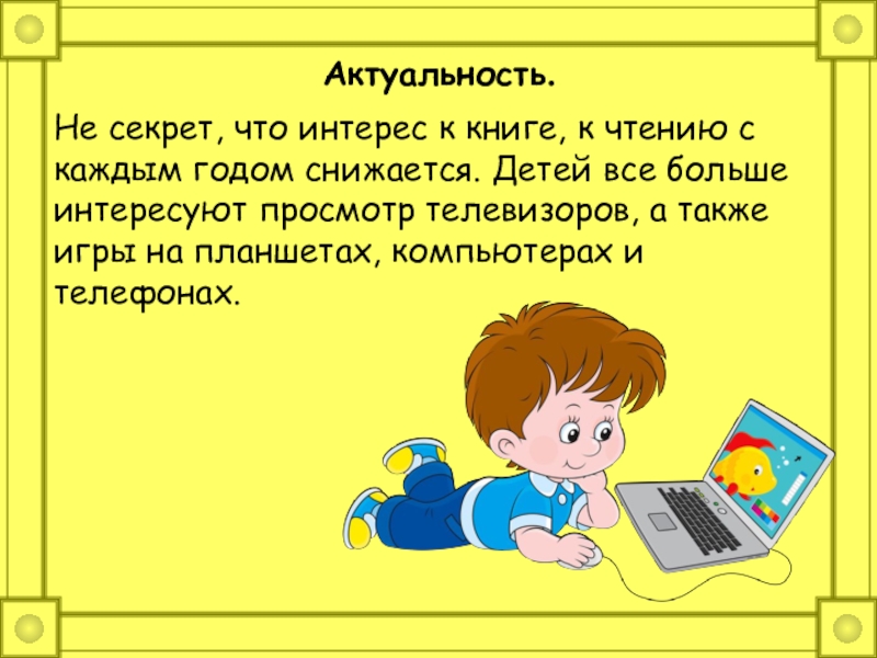 снижается. Детей все больше интересуют просмотр телевизоров, а также игры на планшетах, компьютерах и телефонах.