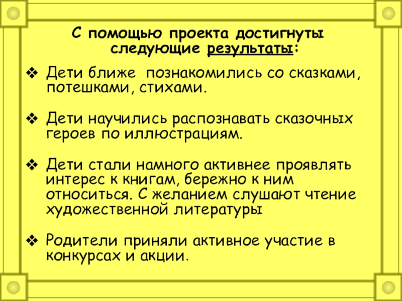 Слайд 17С помощью проекта достигнуты следующие результаты: