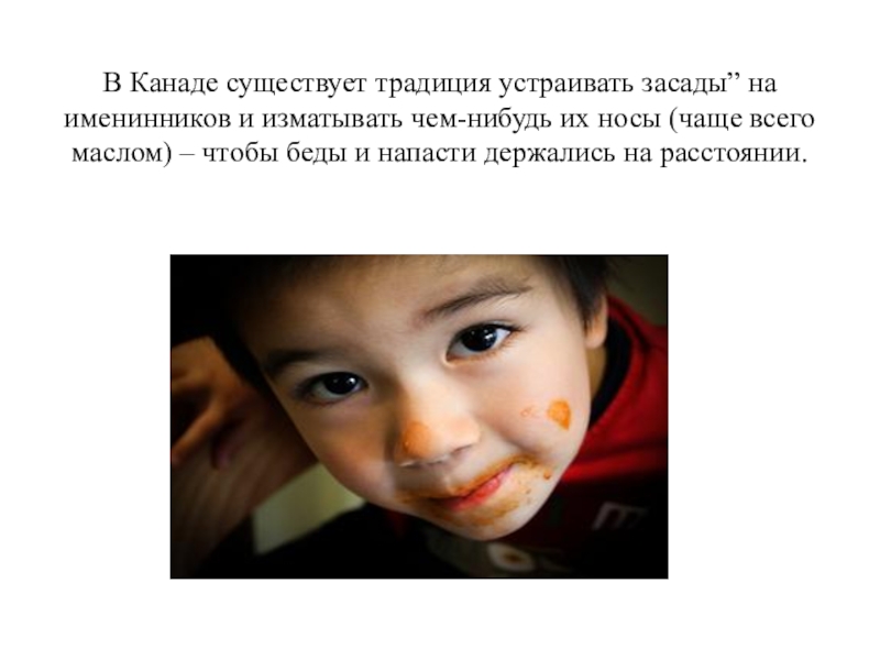 В Канаде существует традиция устраивать засады” на именинников и изматывать чем-нибудь их носы (чаще всего маслом) –