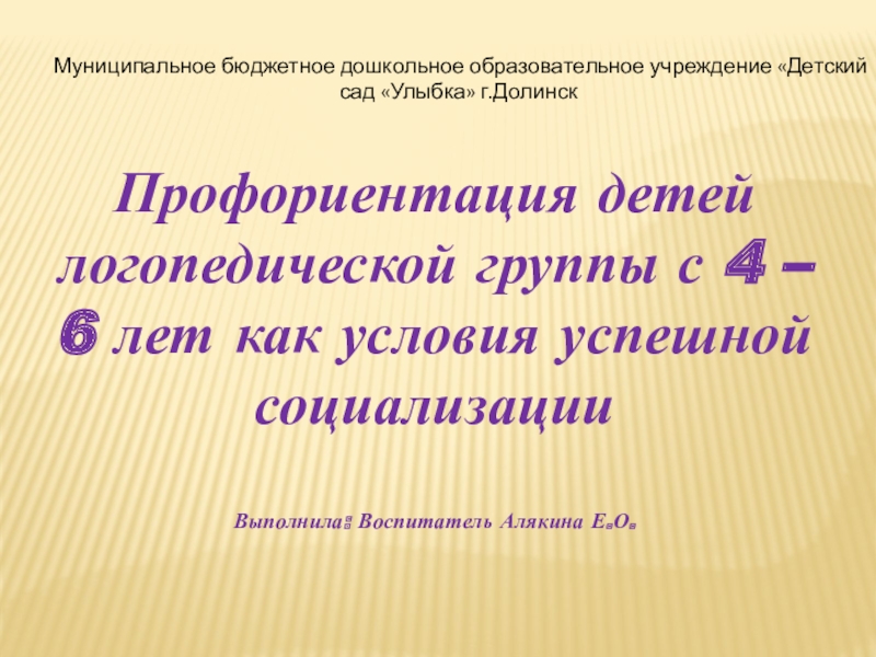 Муниципальное бюджетное дошкольное образовательное учреждение «Детский сад «Улыбка» г.Долинск