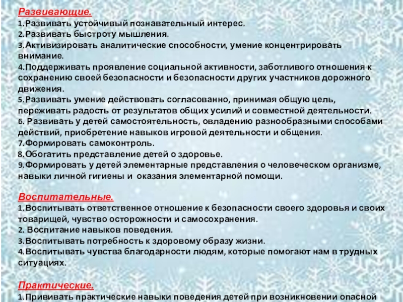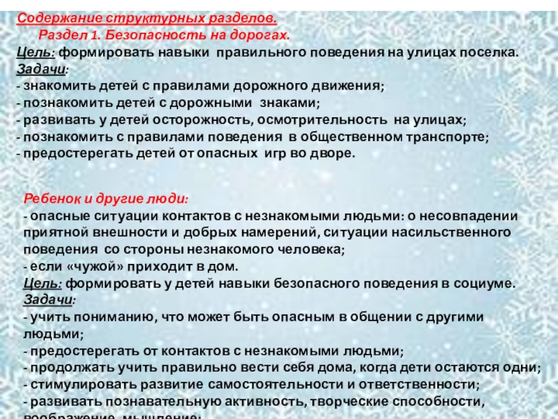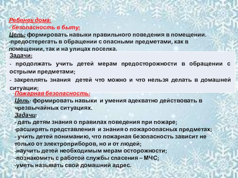 3.Закрепить правила личной безопасности: безопасность на дорогах, безопасность собственной жизнедеятельности: ребенок и другие люди, ребенок дома.