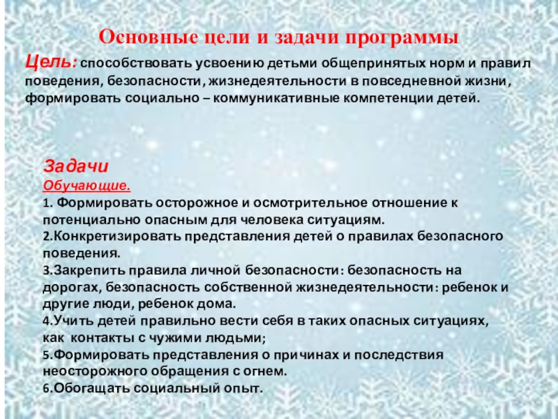 1. Формировать осторожное и осмотрительное отношение к потенциально опасным для человека ситуациям.