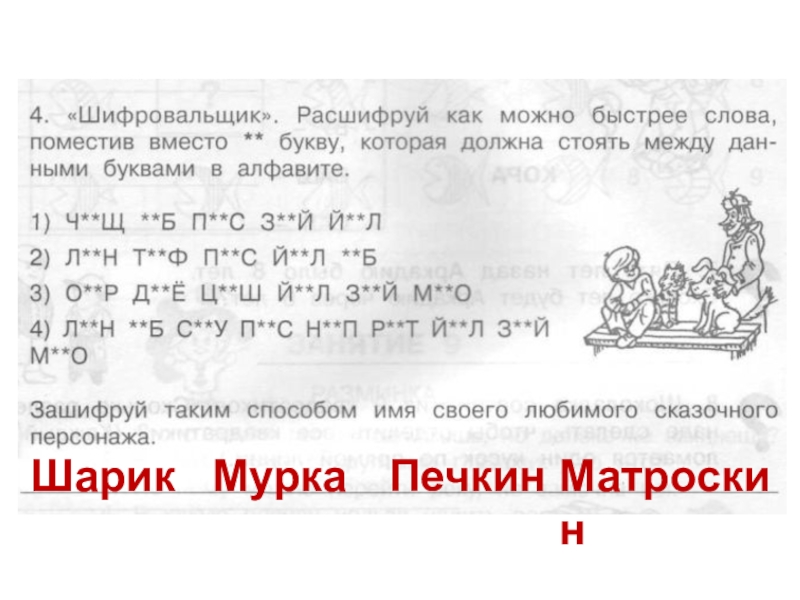 Шарик Мурка Печкин Матроскин