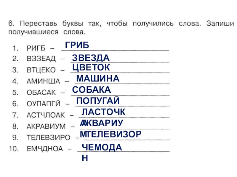 ЦВЕТОКМАШИНАСОБАКАПОПУГАЙЛАСТОЧКААКВАРИУМТЕЛЕВИЗОРЗВЕЗДАГРИБЧЕМОДАН