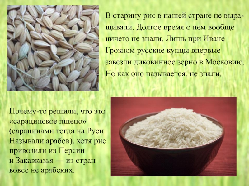 Слайд 19В старину рис в нашей стране не выра-