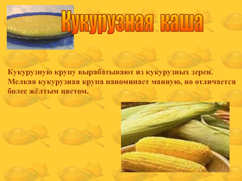 Слайд 24Кукурузная каша
