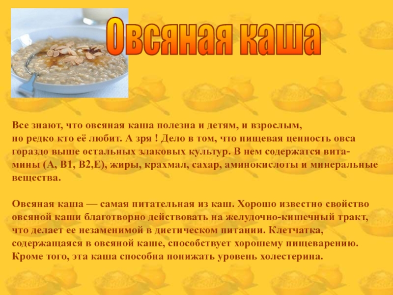 Слайд 23Овсяная каша